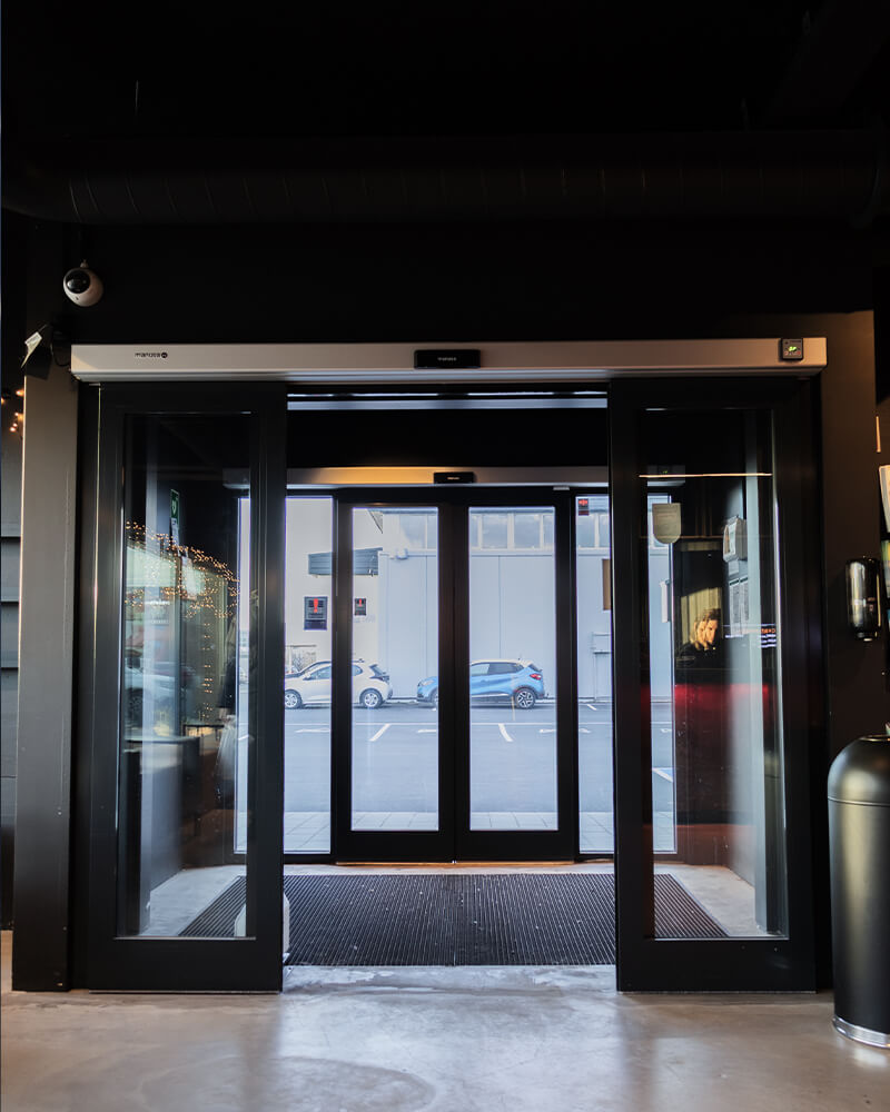 Smíði og uppsetning á tvöfaldri sjálfvirkri hurð fyrir Lava Show staðsett útá Granda Reykjavík.